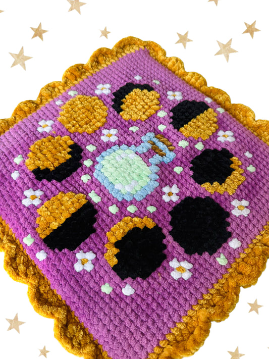 [Crochet & Cross-stitch PATTERN] Bee & Puppycat Lavender Pillow
