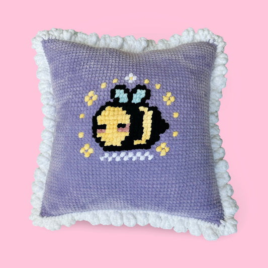 [Crochet & Cross-stitch PATTERN] Bee & Puppycat Lavender Pillow