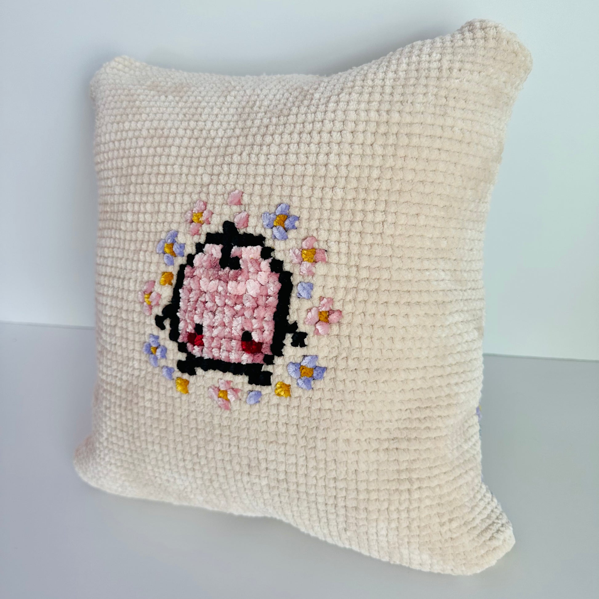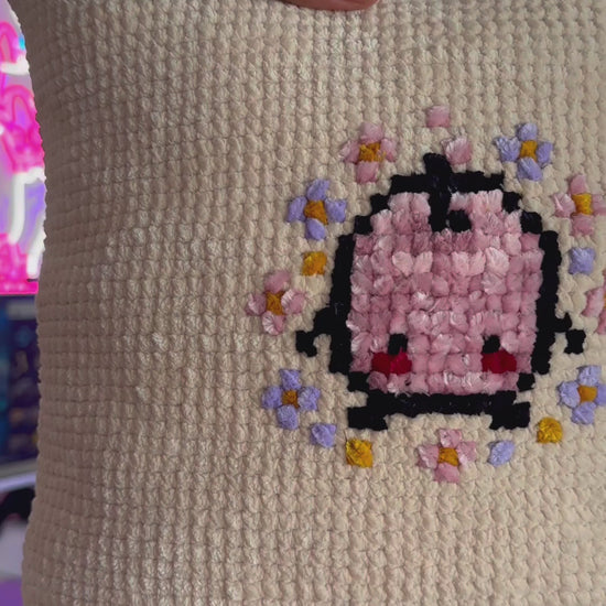 Introducing the Crochet Stardew Valley Chicken & Egg Pillow, a whimsical creation inspired by the beloved world of Stardew Valley. Handcrafted with meticulous care using luxurious velvet yarn, this charming pillow showcases soft pastel colors and an intricate crochet design.